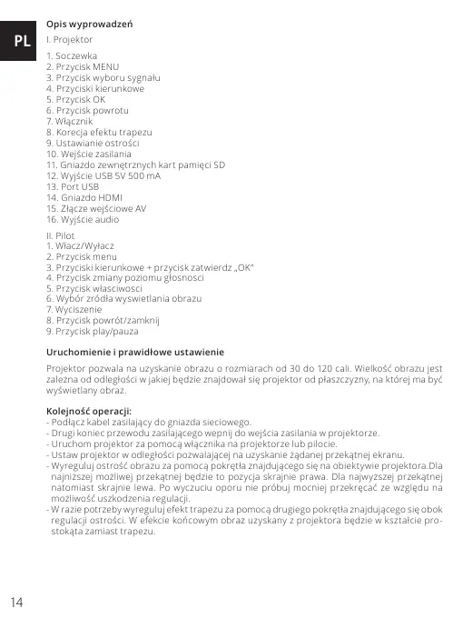 regulacji ostrości. W efekcie końcowym obraz uzyskany z projektora będzie w kształcie pro-