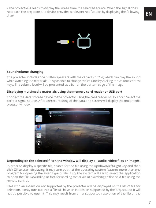 Files with an extension not supported by the projector will be displayed on the list of le for
