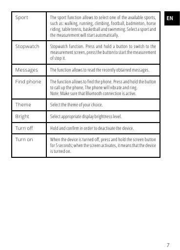 Stopwatch Stopwatch function. Press and hold a button to switch to the