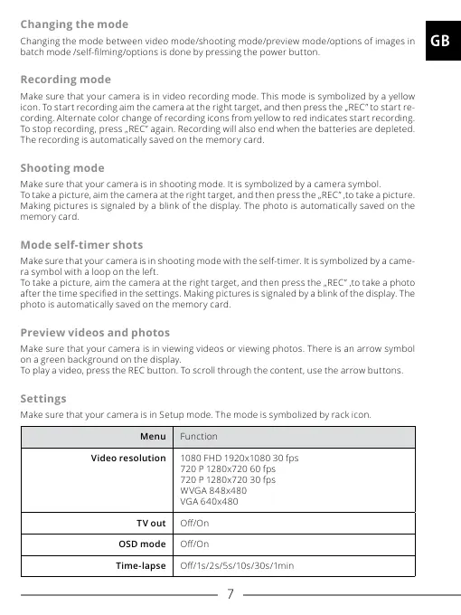 icon. To start recording aim the camera at the right target, and then press the „REC” to start re-