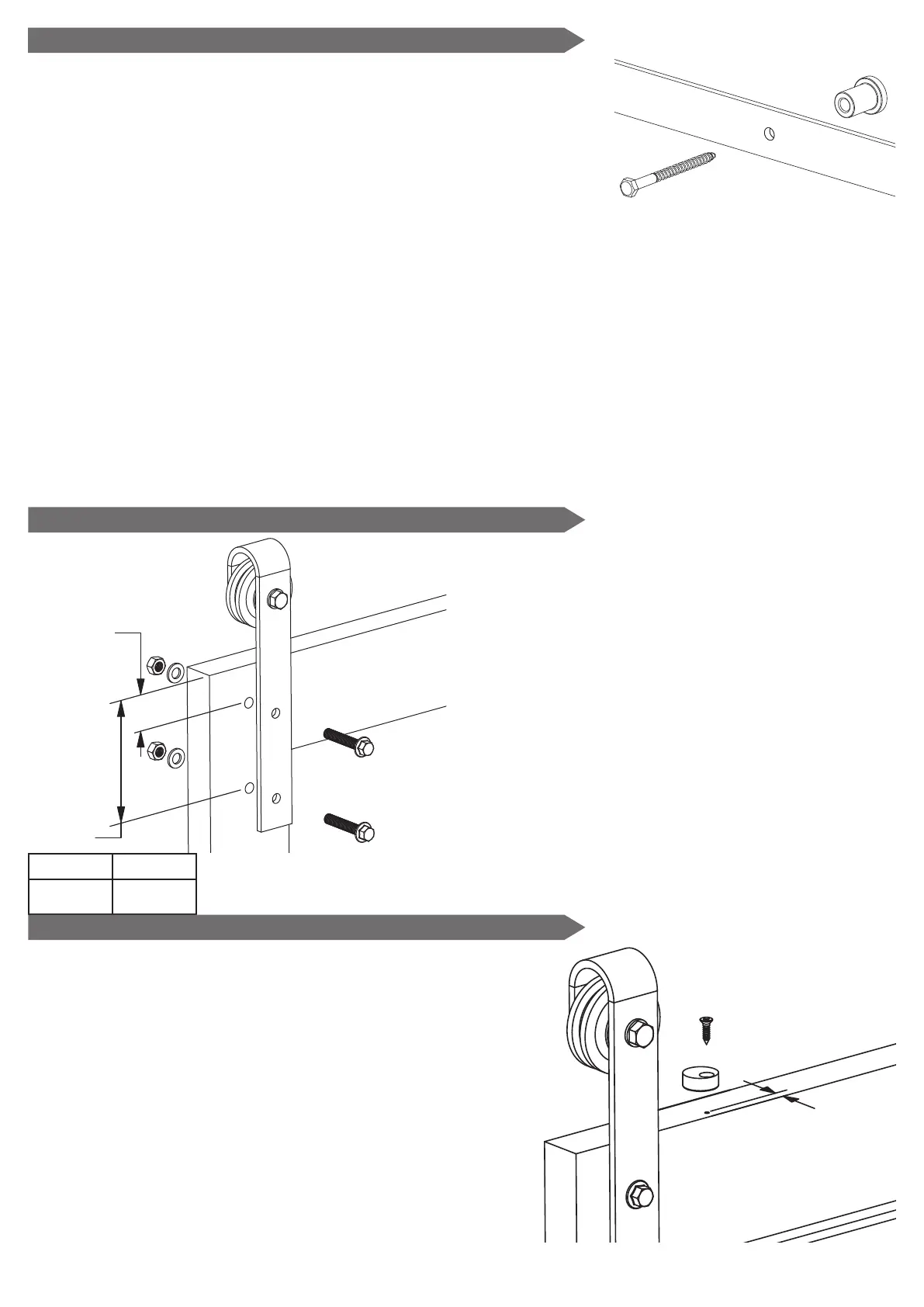 Insert remaining four Lag Screws through Rail holes and Spacers, and drive into pilot holes. DO