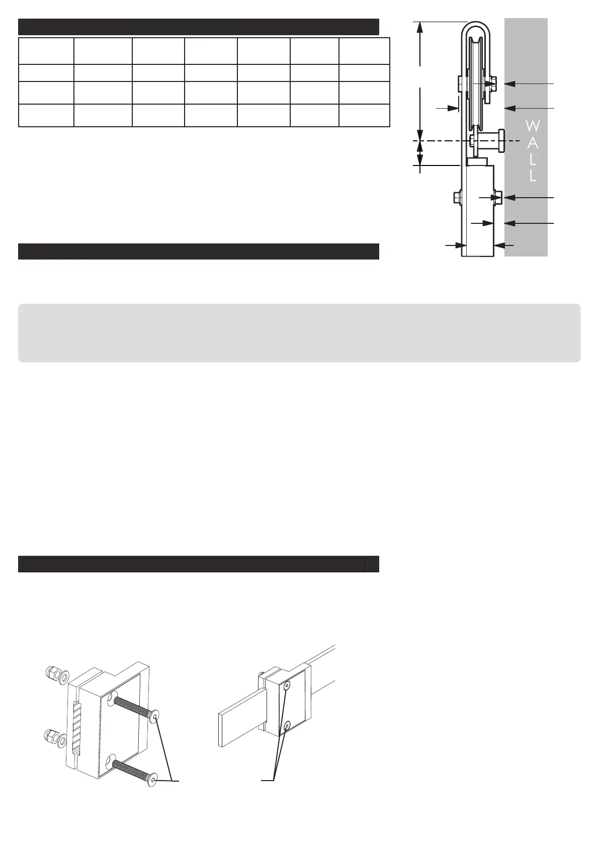 Allow at least 3/4” clearance above the trolley.