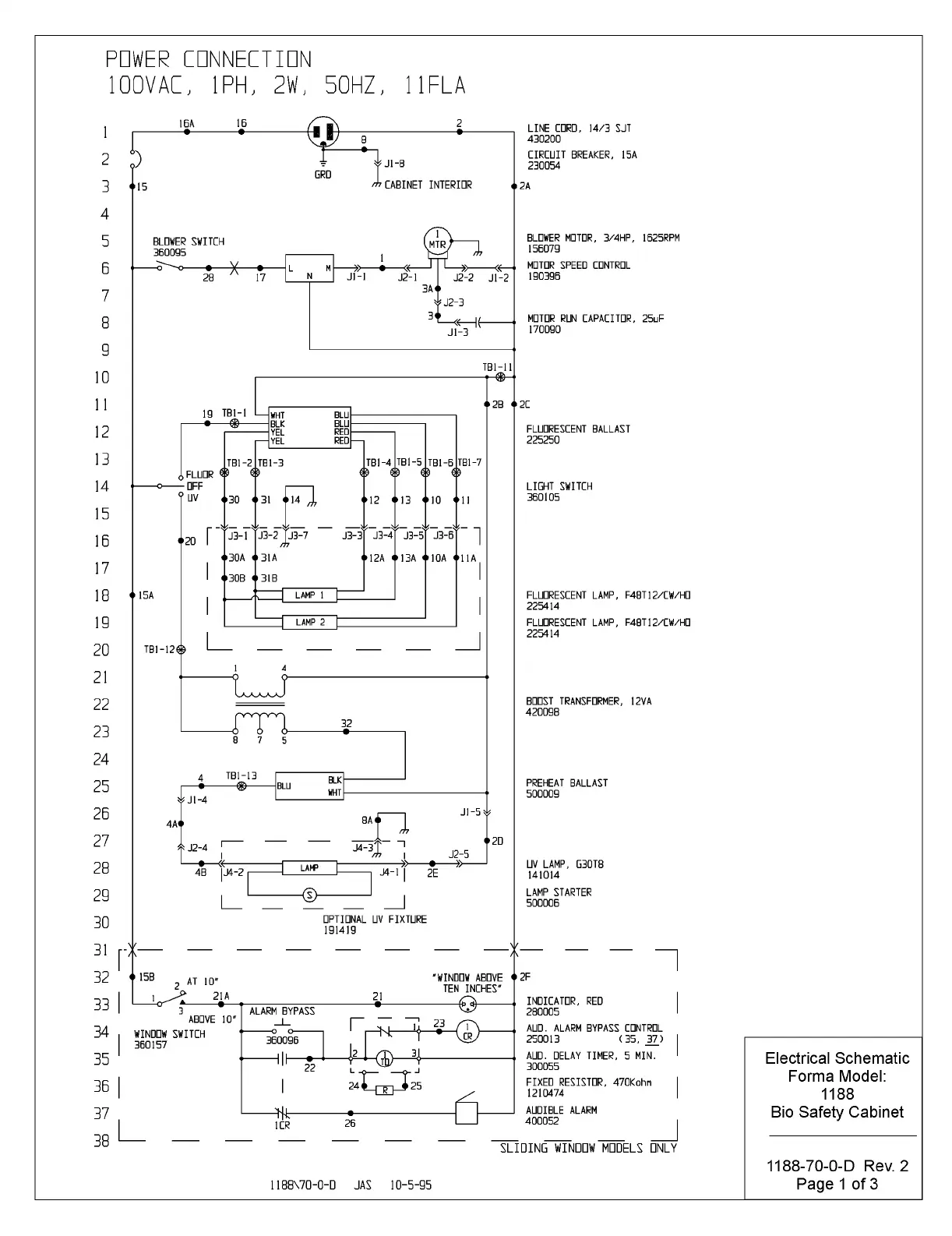 Forma Scientific 1184 - Electrical Schematic for Model 1188