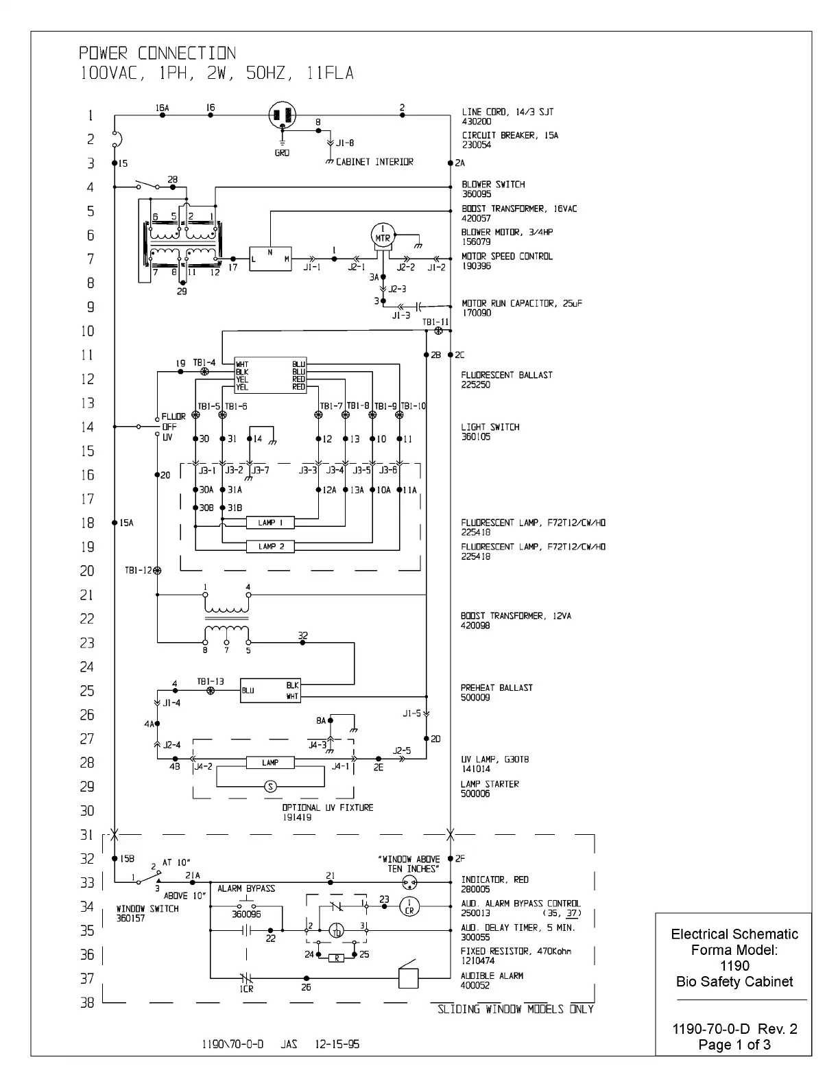 Forma Scientific 1184 - Electrical Schematic for Model 1190