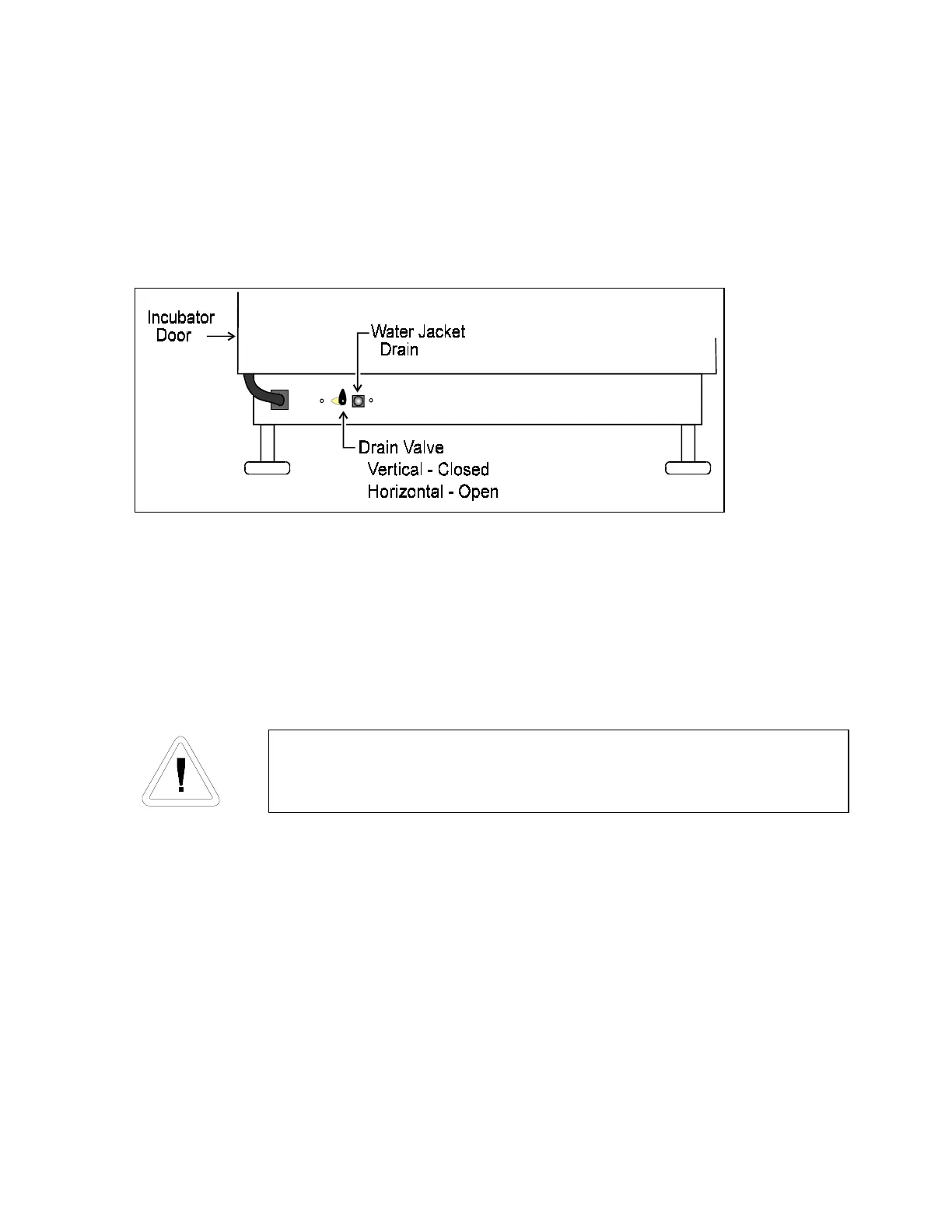 Verify that the water jacket drain valve on the bottom of the incubator frame is