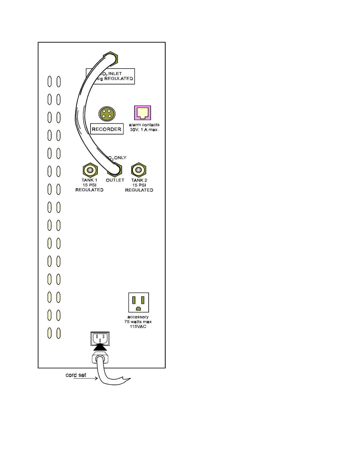 outlet fitting and the gas inlet on the back of