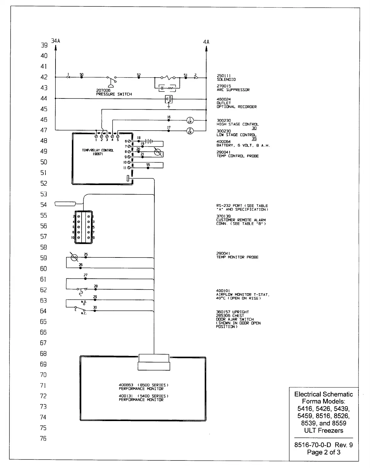 Forma Scientific 8525 - 120 V Electrical Schematic; 120 V Control & Monitor Wiring; 120 V Sensor & Switch Wiring