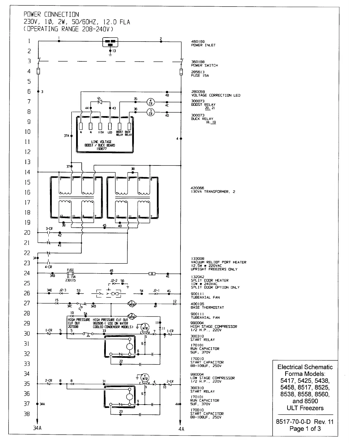 Forma Scientific 8525 - 230 V Power Connection & Components; 230 V Compressor & Fan Wiring