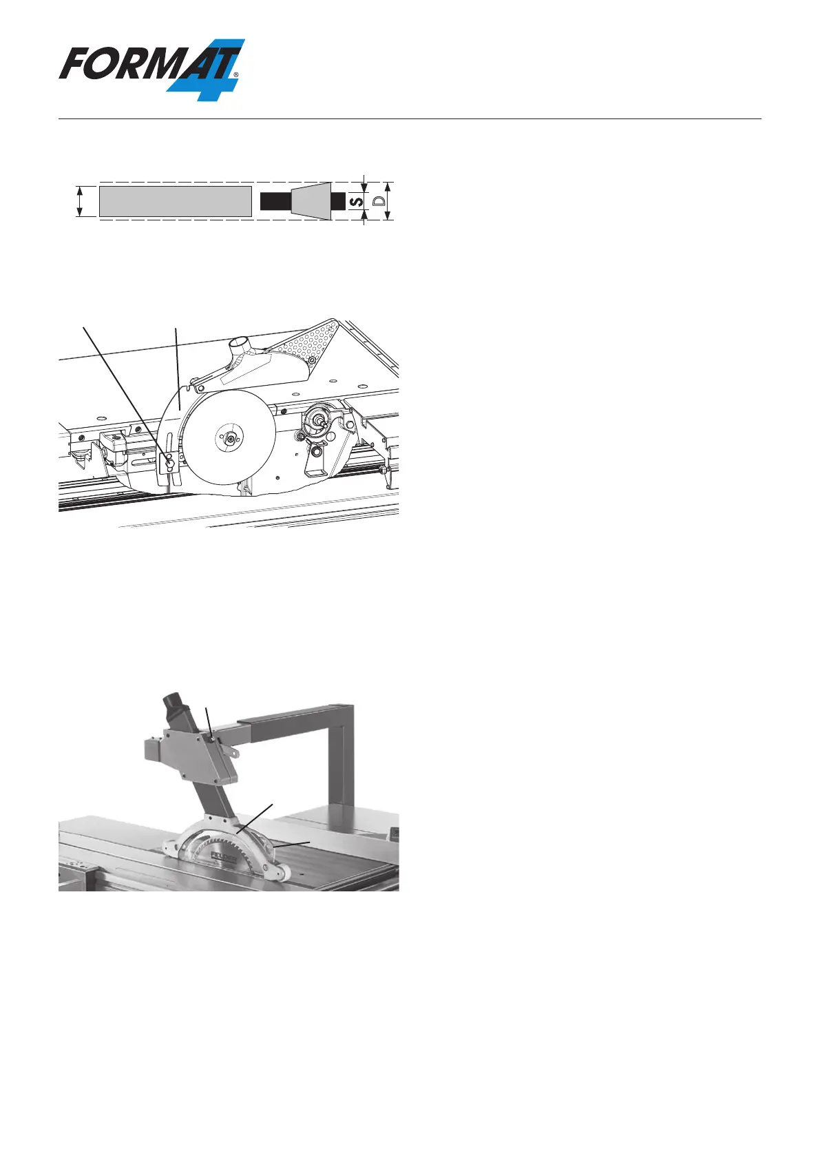 Splitter thickness (d), saw blade body (S), sawtooth width (D)