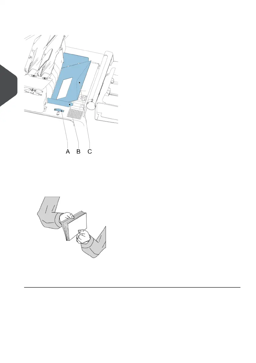 1. Move the side guides B apart as far as possible with thumb wheel A.