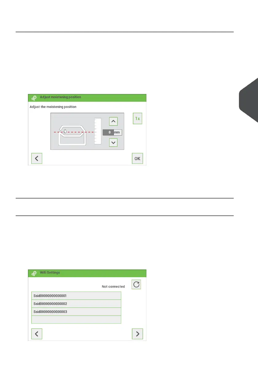 4. Use the arrow buttons up/down to adjust the moistening position.