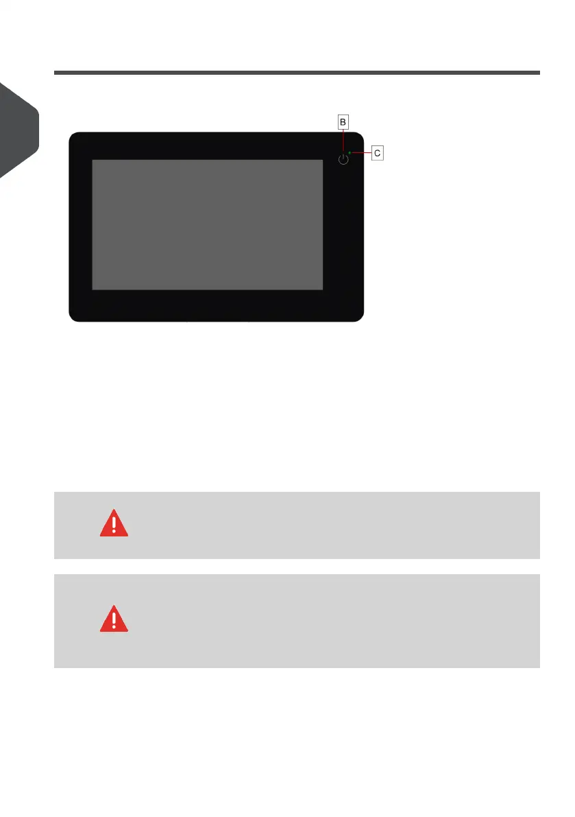 On/Off (B): The touch sensitive button in the upper right corner of the display switches the