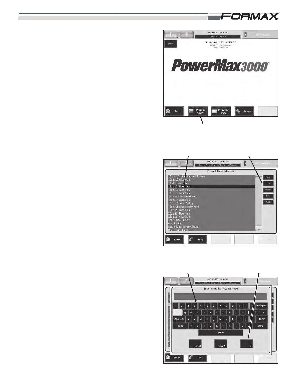 1. Touch the “Product Codes” button on the