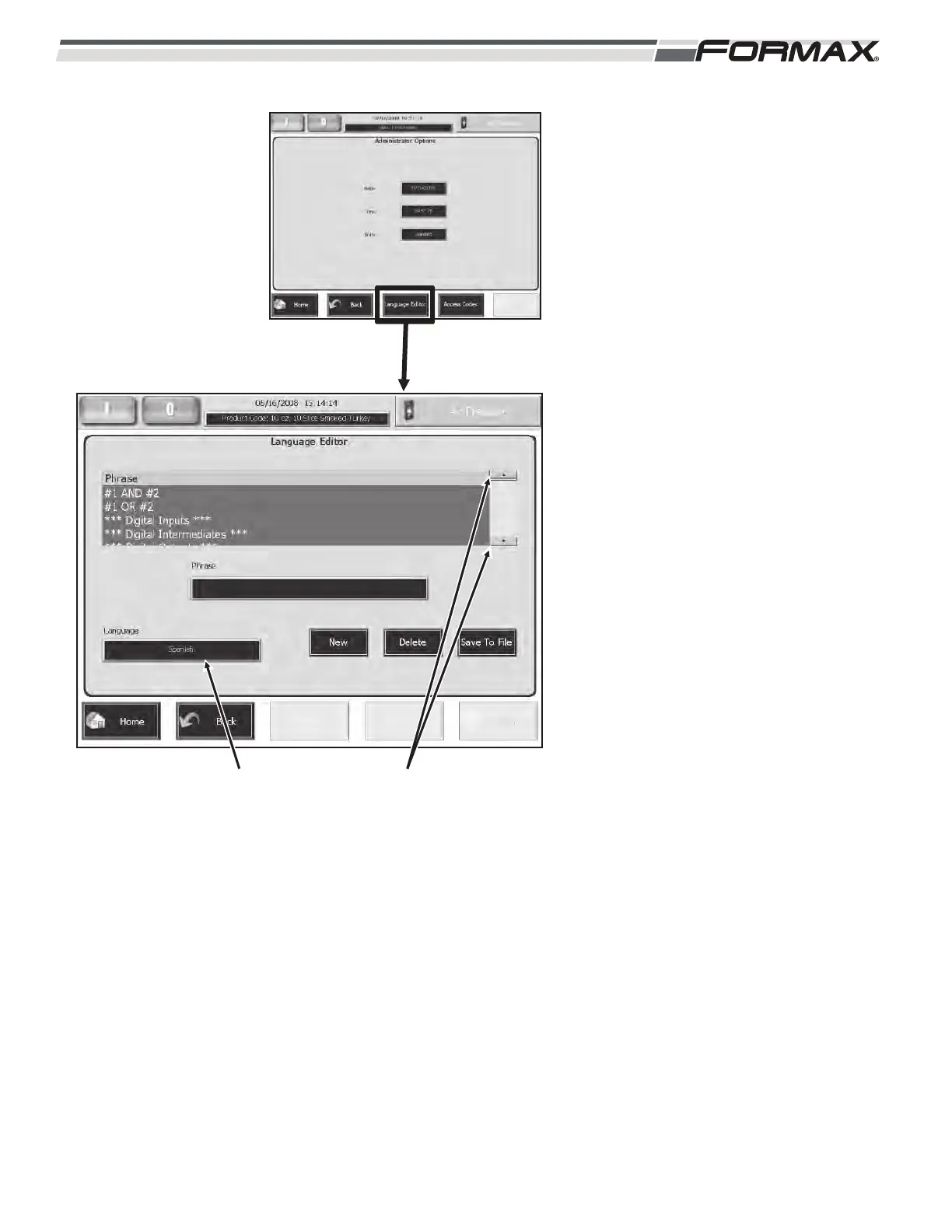 “LANGUAGE” BUTTON “UP/DOWN” SCROLL ARROWS
