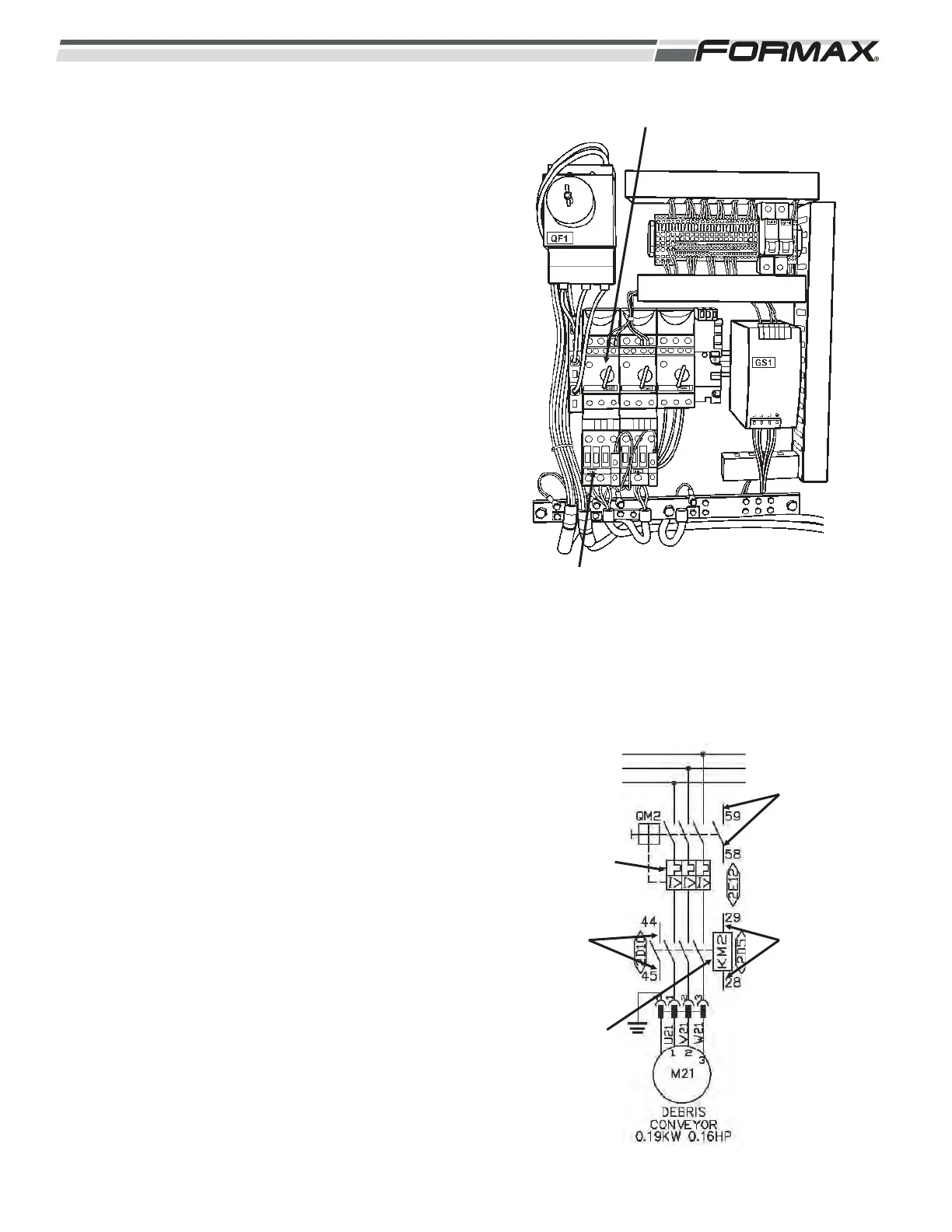to the M21 Debris Conveyor Motor. The