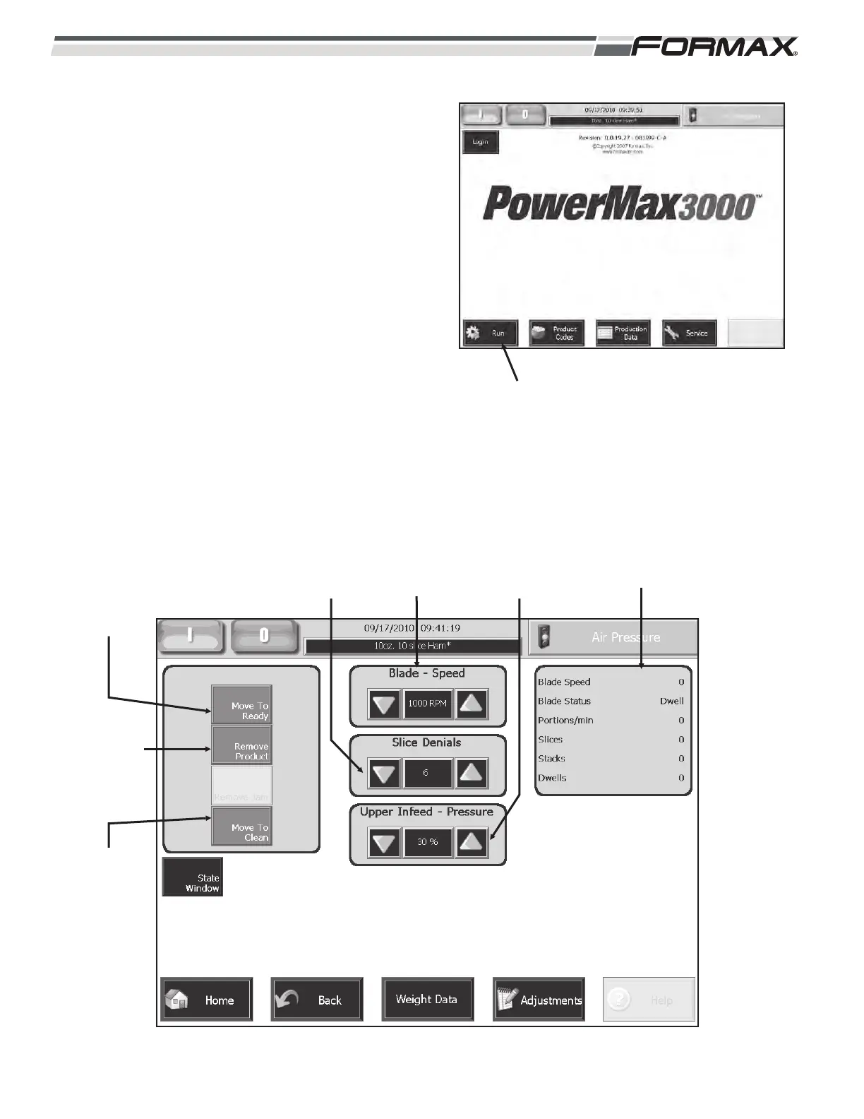 Speed,” “Slice Denials,” “Upper Infeed Pressure” and