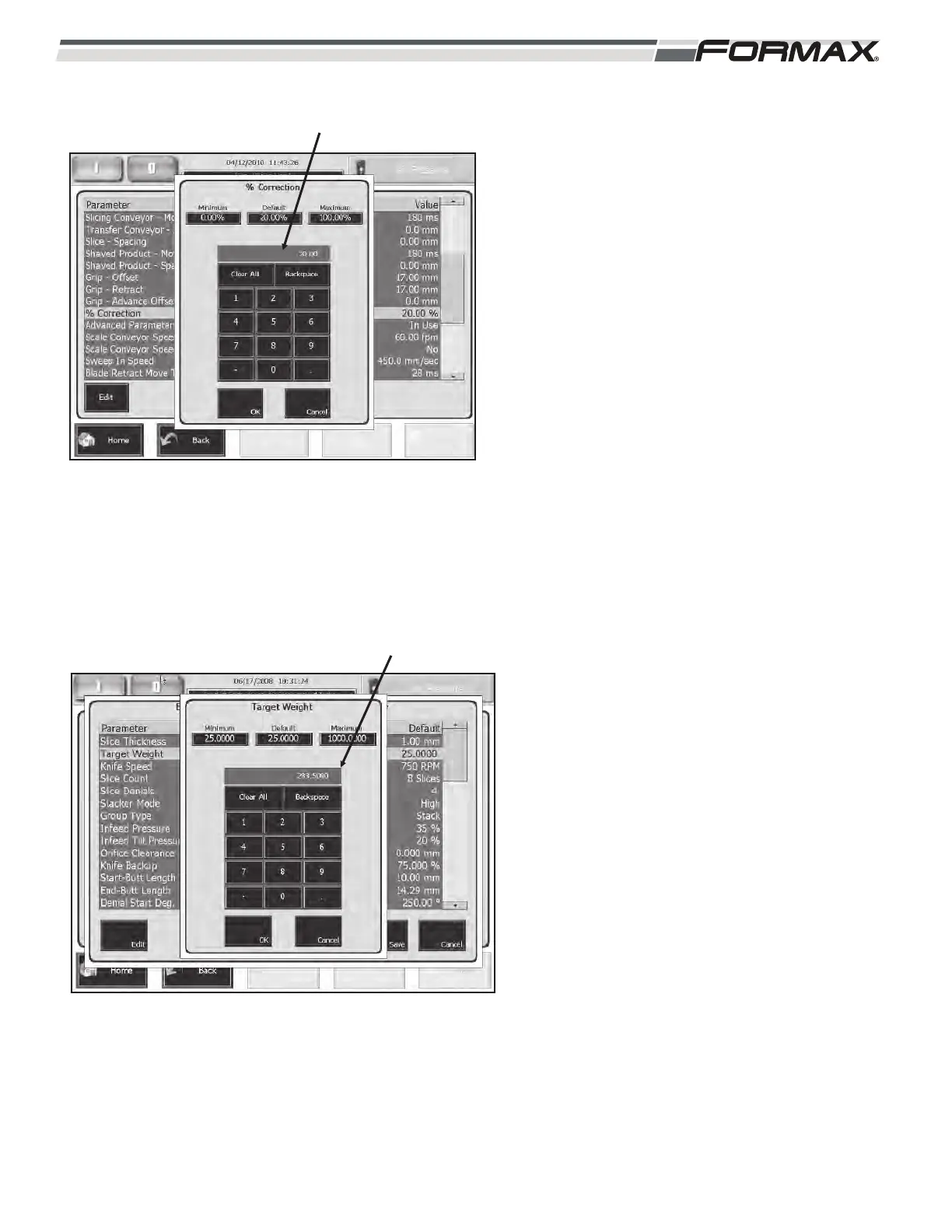 (Illustration 61) Touching the % Correction button
