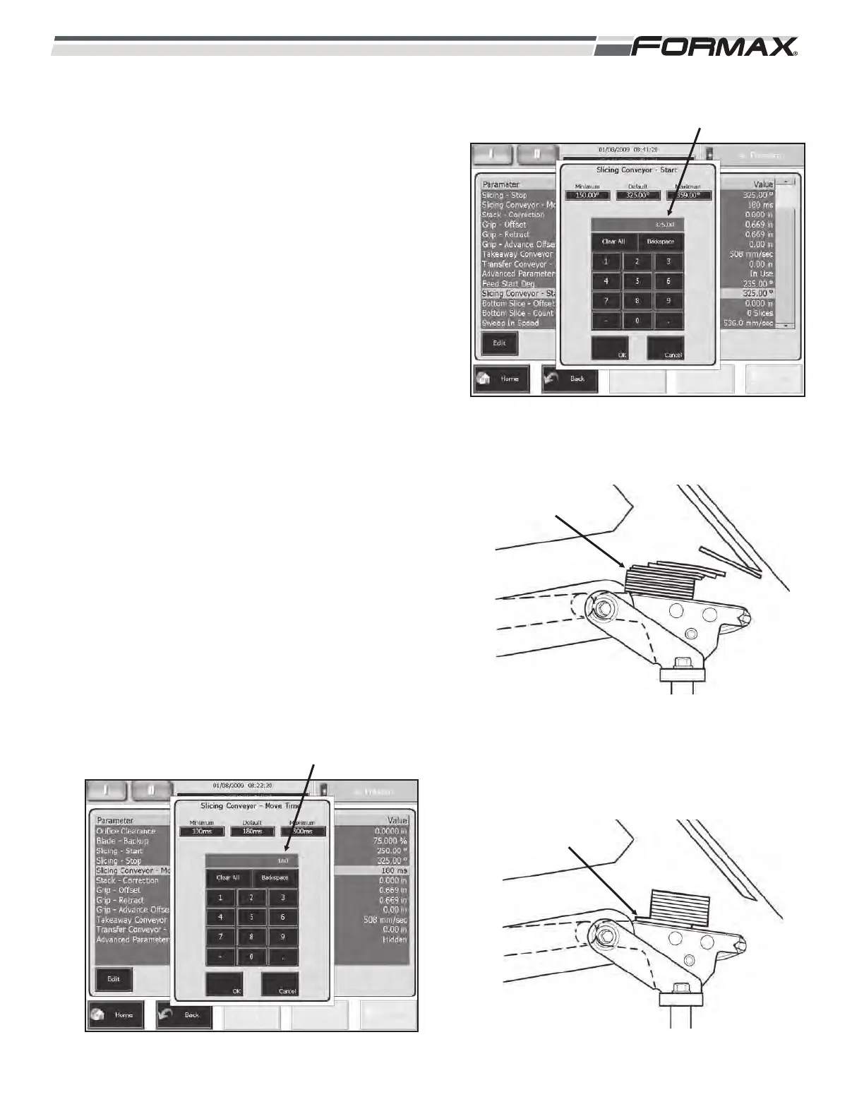 “SLICING CONVEYOR MOVE TIME” ADJUSTMENT
