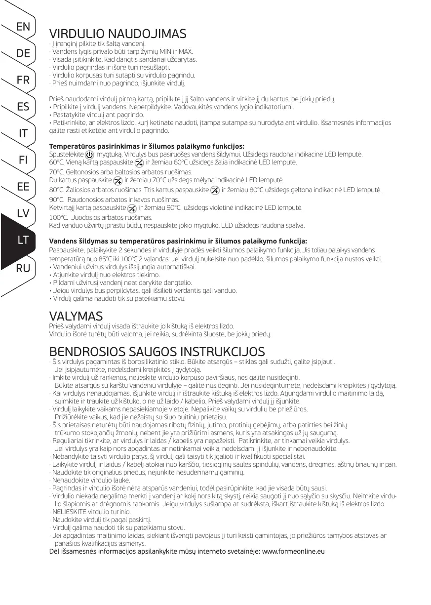 Dėl išsamesnės informacijos apsilankykite mūsų interneto svetainėje: www.formeonline.eu