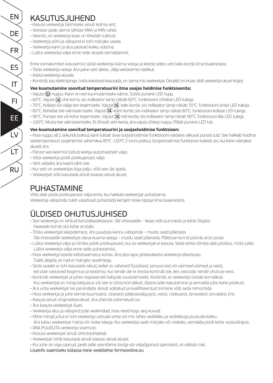 • Kasuta veekeetjat ainult sihtotstarbekalt.