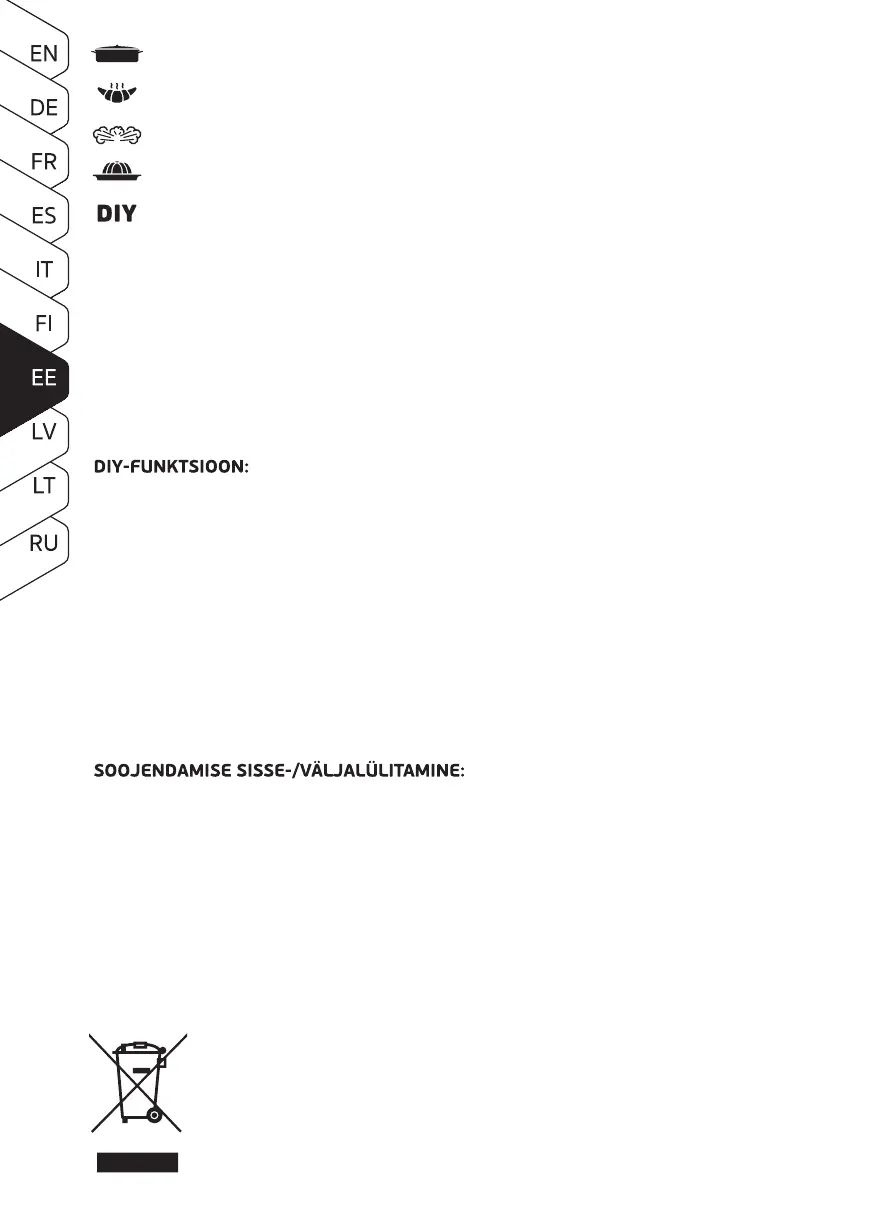 Küpsetustemperatuuri on võimalik muuta ainult FRY ja DIY programmide puhul.