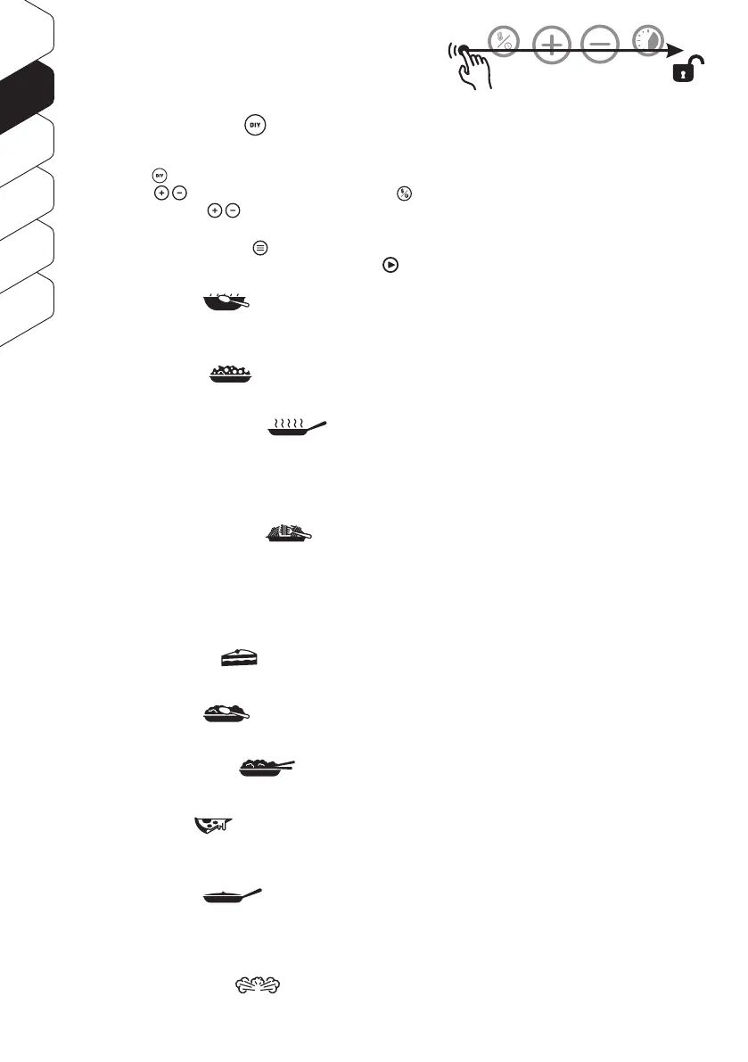 Valittavissa oleva aika on 5 min – 2,5h. Oletuksellinen lämpötila on 160 °C. Tarkista ajoittain ruoan valmiusaste.