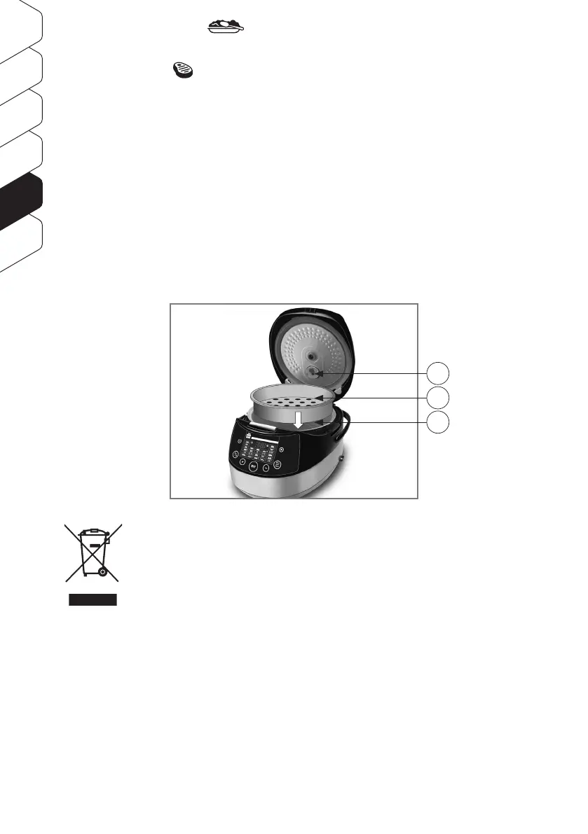Gaminant rekomenduojama laikyti dangtį atidarytą. Kepimui paruoštus produktus dėkite į dubenį tik jam įkai-