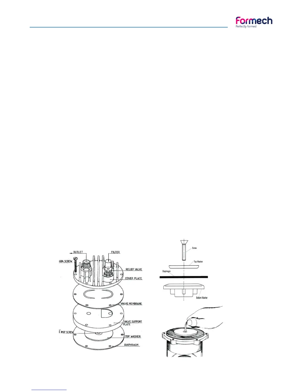 valve confi guration operated by the motor. After considerable use the valve membranes and top washer may