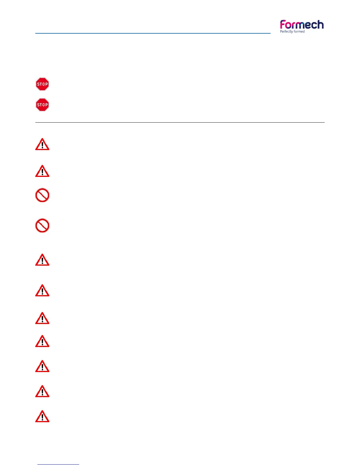 8) Only use the machine for vacuum forming and blow moulding of plastic. It is not intended for any other