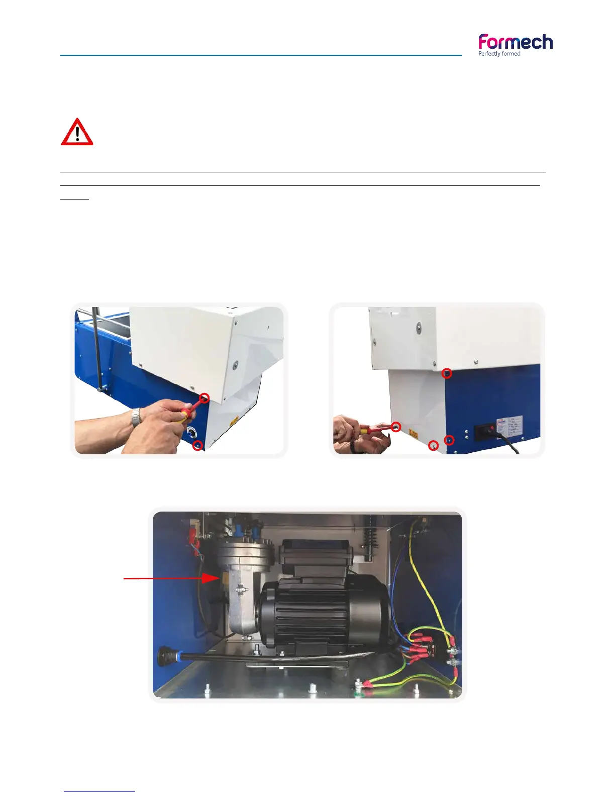 Only a qualified electrical technician may work on any parts carrying mains voltage and should be