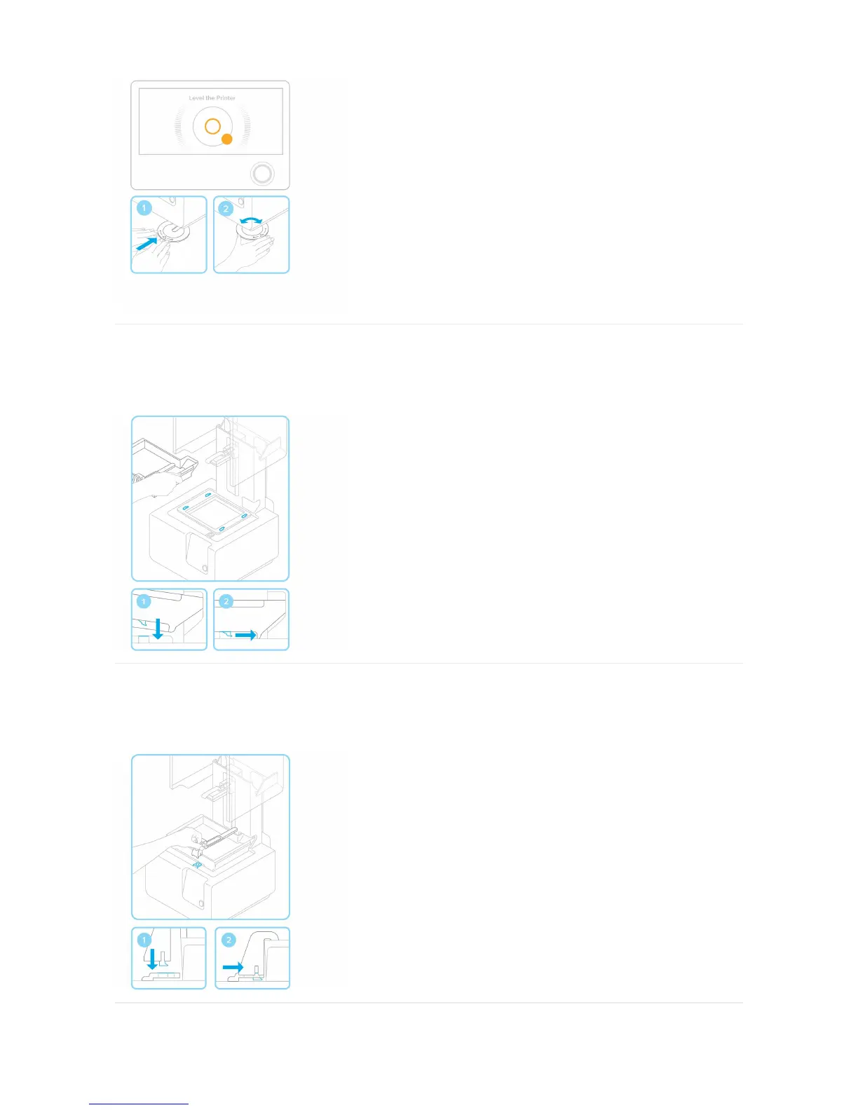 Remove the tank lid and align the four small feet of the resin tank with the corresponding holes in the tank carrier; push forward into place.
