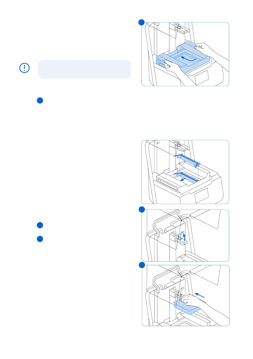 Lift the resin tank with one hand on each side.
