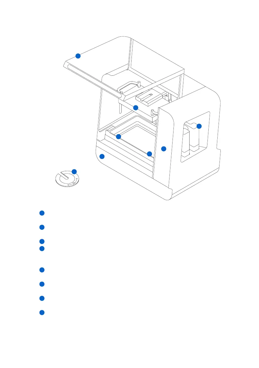 Resin tank: Resin is dispensed out of the resin cartridges into the resin tank. During a print,