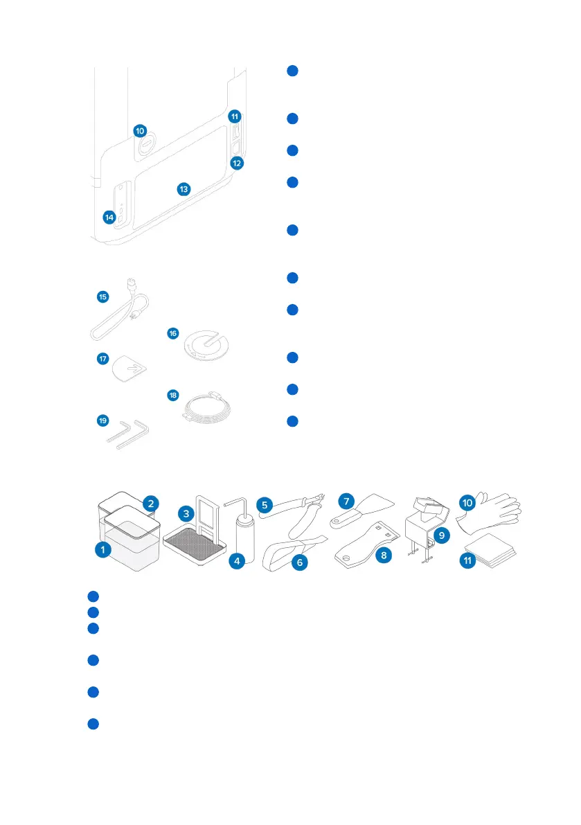 6. Removal tool: Pry under the raft to remove prints from the build platform. Do not use the