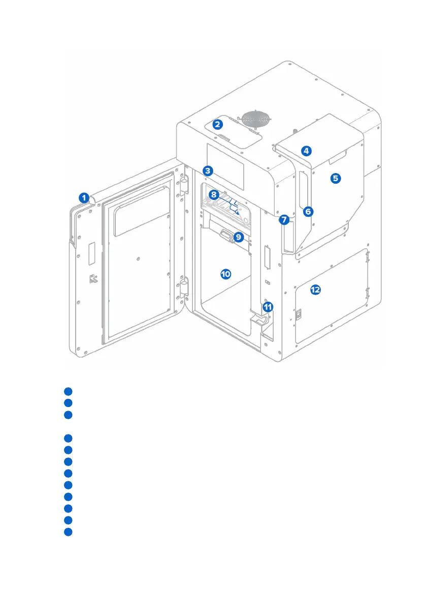 Print enclosure: Houses the build chamber and optics system for printing.