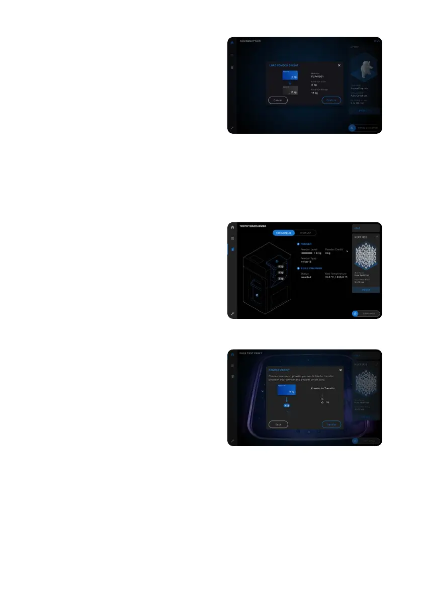 Powder Credit screen displays the amount