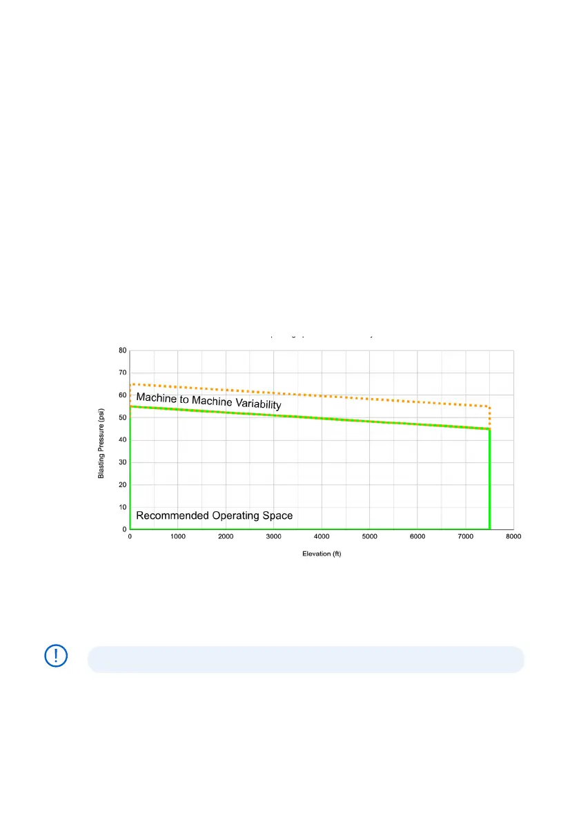 Maximum blasting pressure is dependent on installation altitude. The altitude chart below
