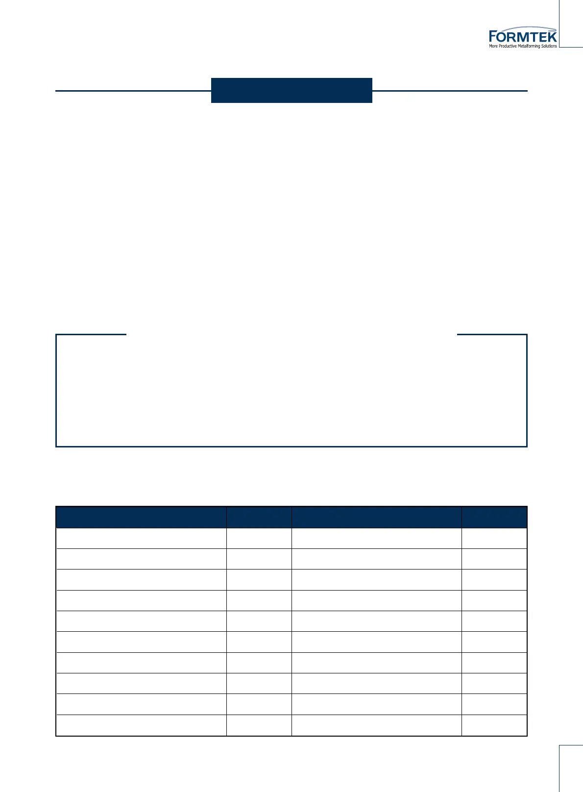 Replacement and maintenance parts must be purchased from FORMTEK or the component original equipment