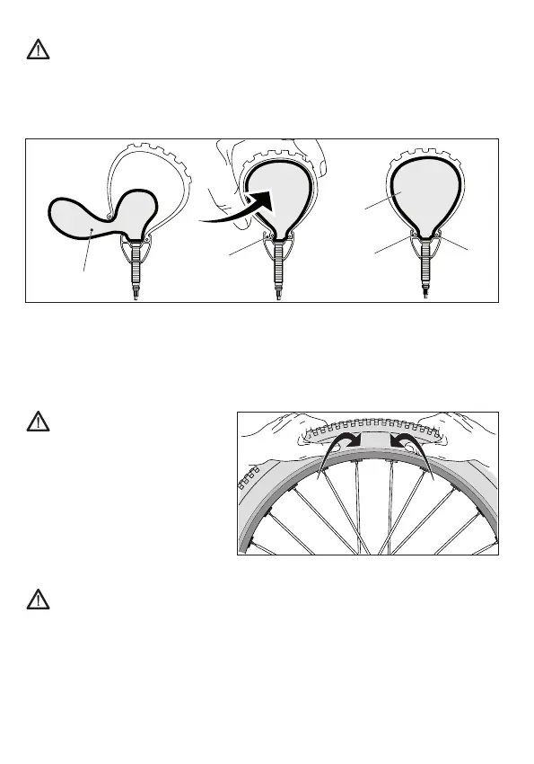 the valve and continue along the entire circumference of the rim. Use tire levers if