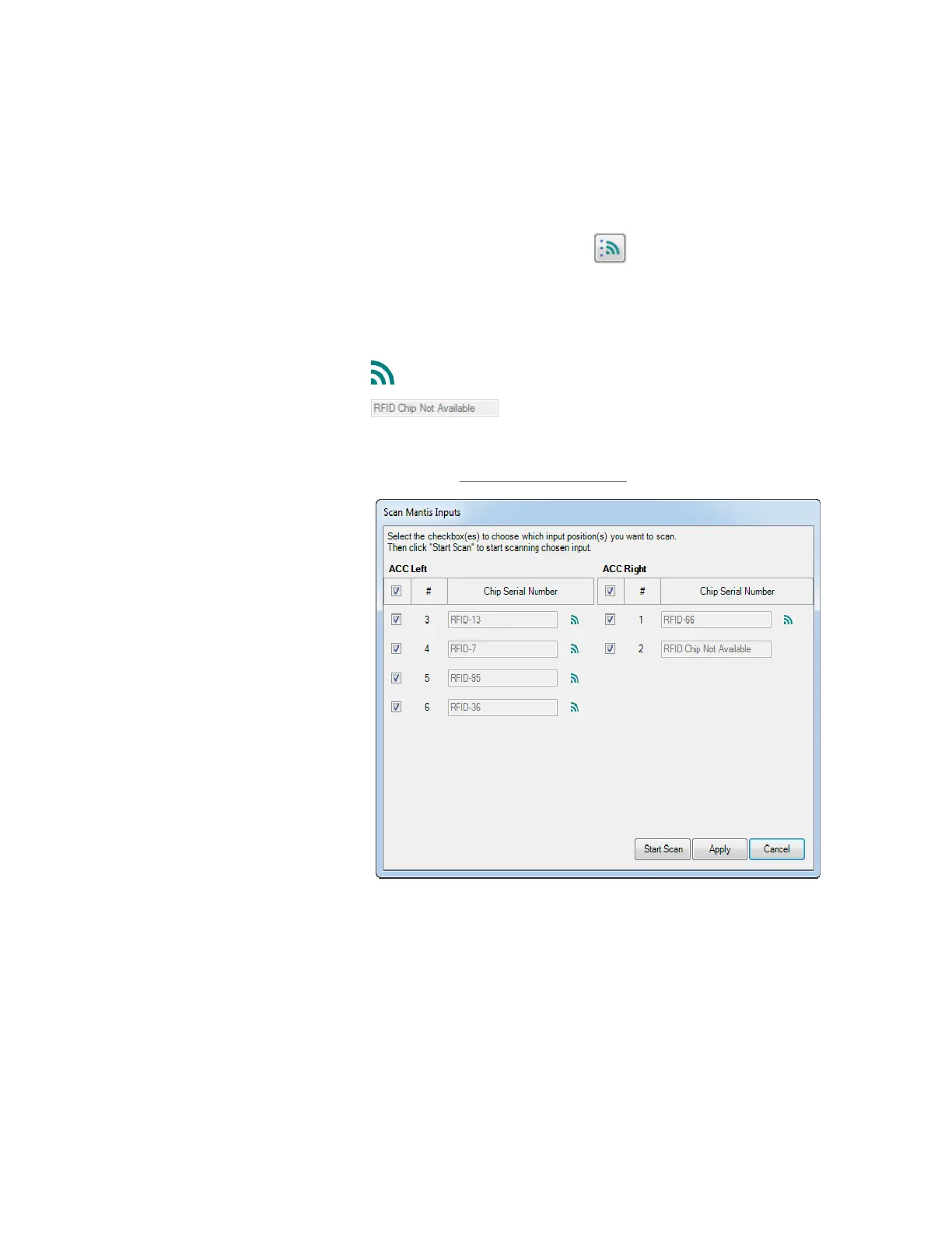 ● Click the Scan All RFID Chip Inputs button in the Input Control Panel for