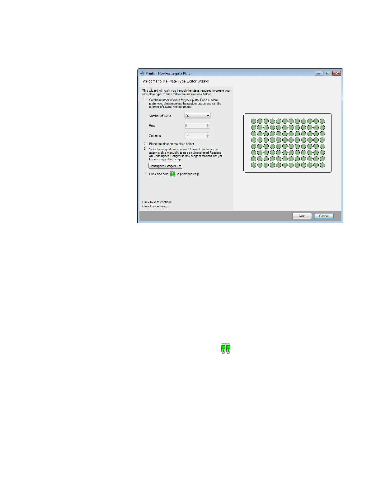 6. Click and hold the prime button to prime the chip and then click Next.