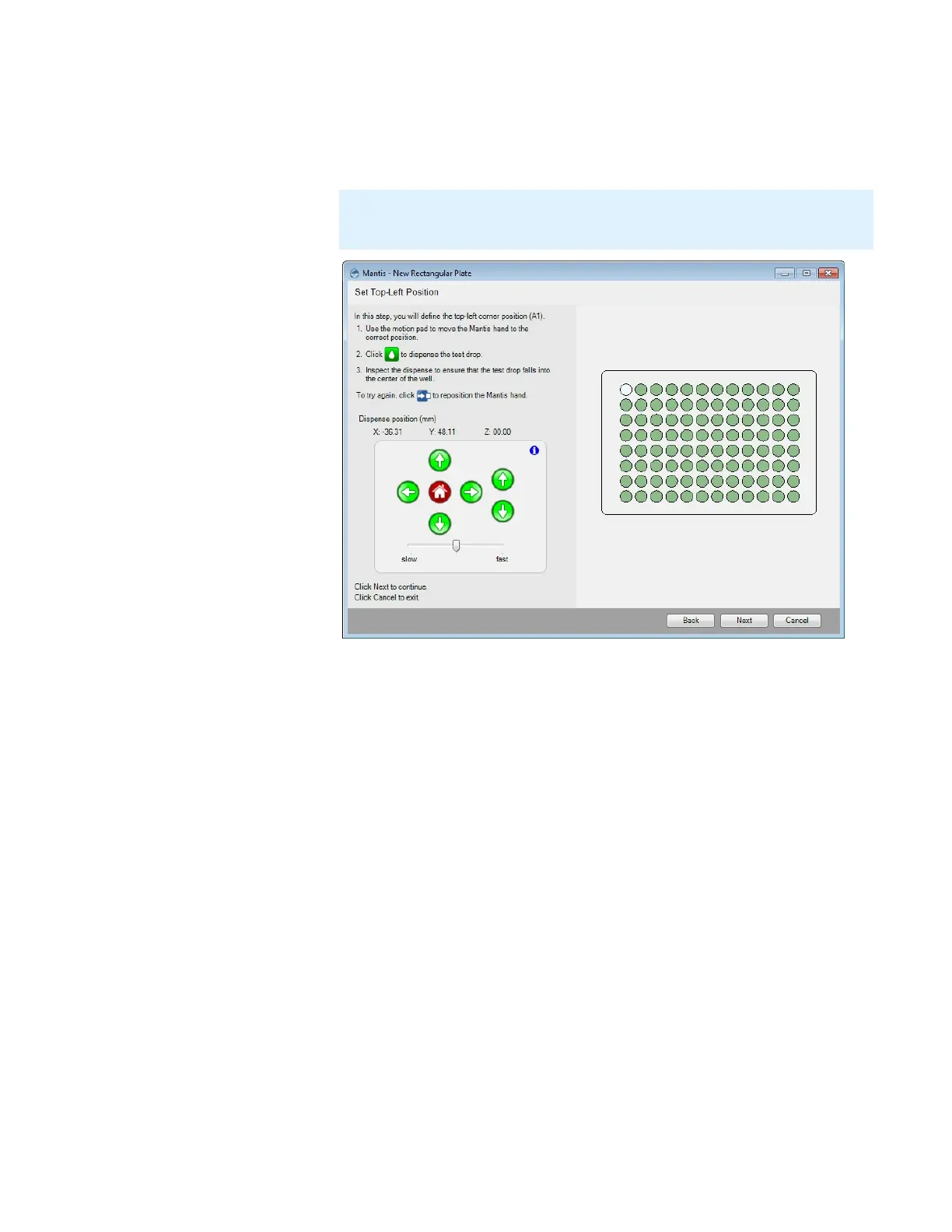7. Set the top-left well position by clicking the arrows, or use keyboard keys to
