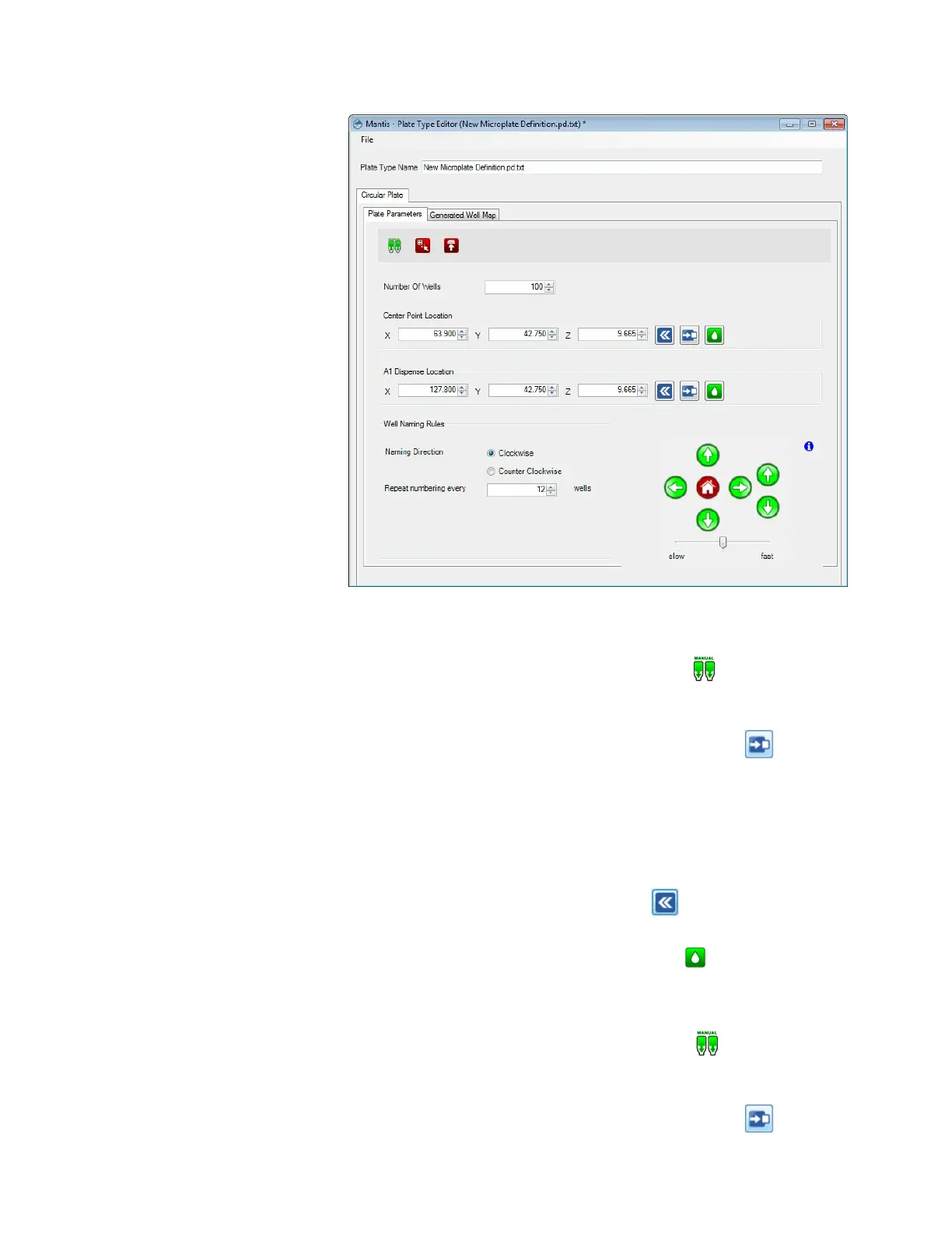 c. Use the Motion Control Pad at the lower right of the Plate Type Editor to