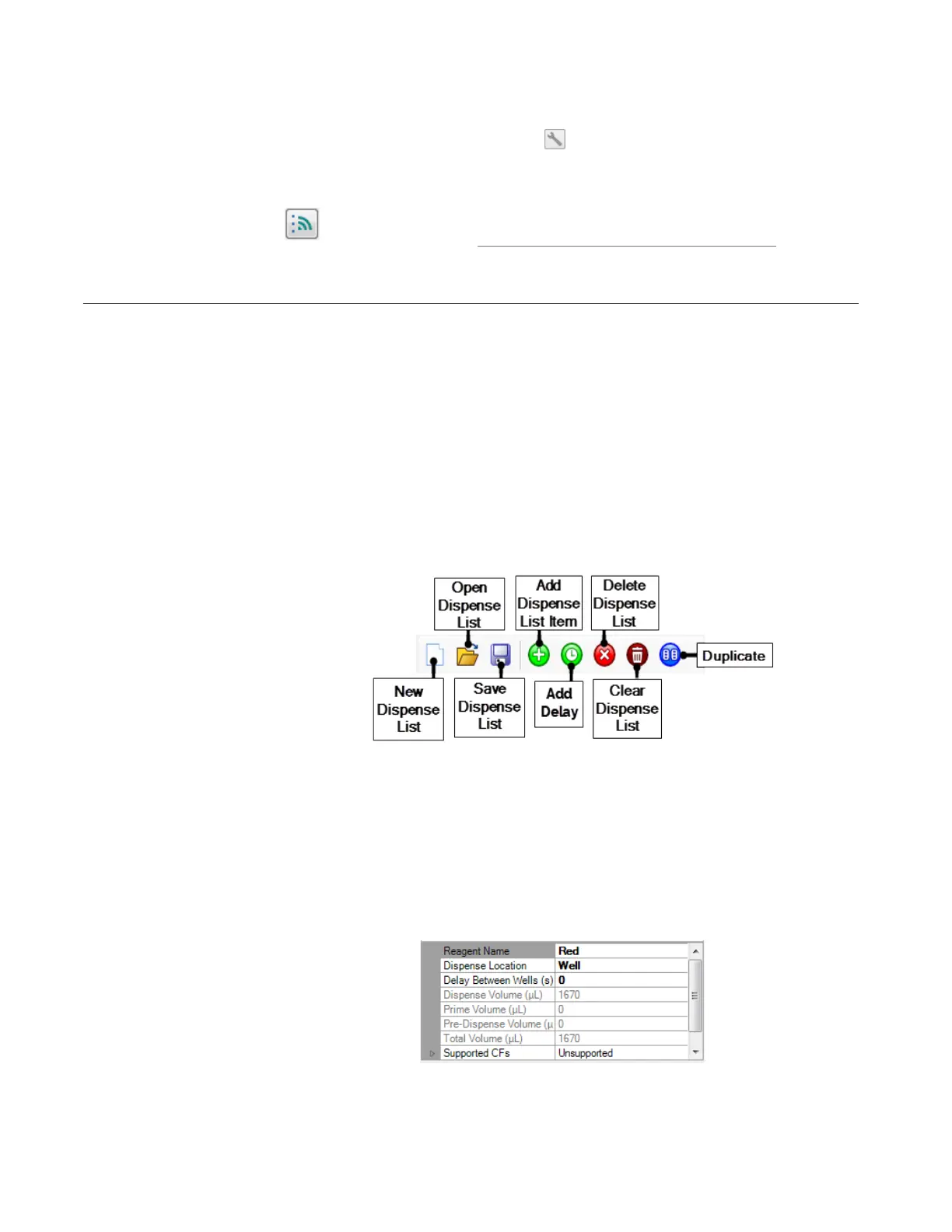 list of reagents to be used in a particular plate dispense. At the right of the Dispense List is