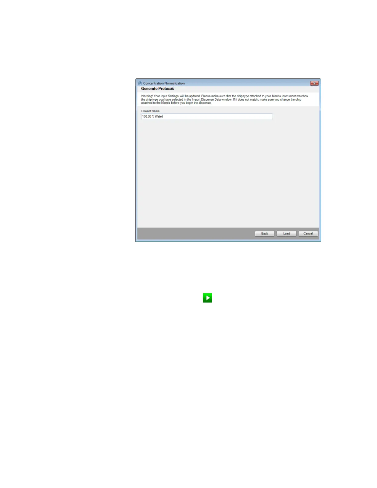 8. Type the Diluent name in the Diluent Name box and click the Load button to load the