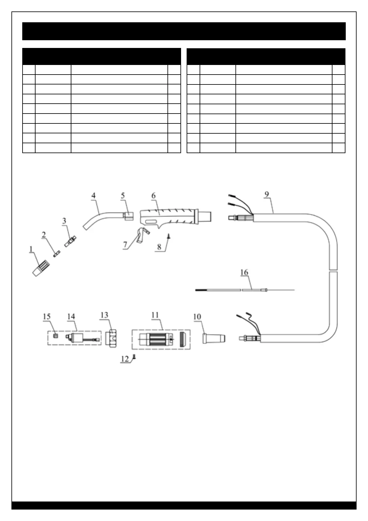 MIG Gun Torch Spare Parts List