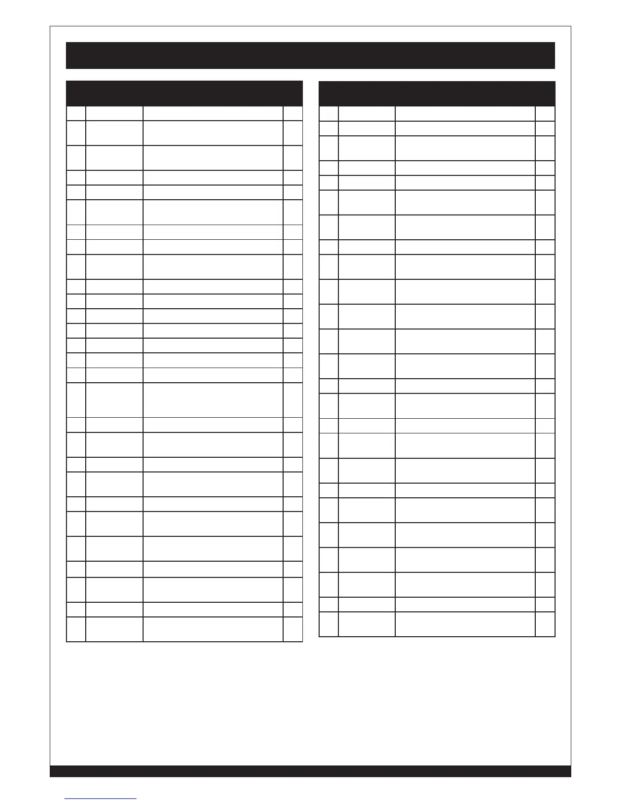 Liste des outils et des pièces de rechange