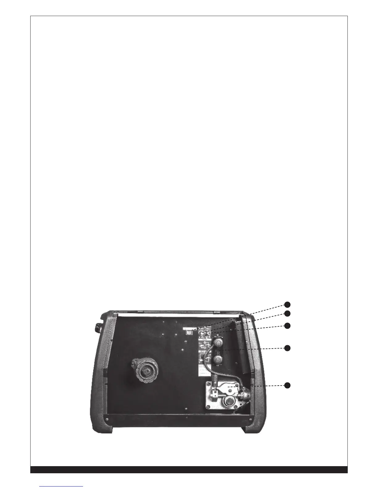 ubicado dentro del compartimiento de la bobina de alambre, arriba del alimentador de