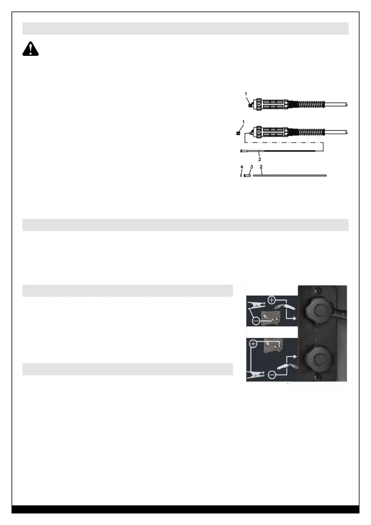 • Conecte el cable de trabajo al terminal positivo del panel de cambio de polaridad ubicado