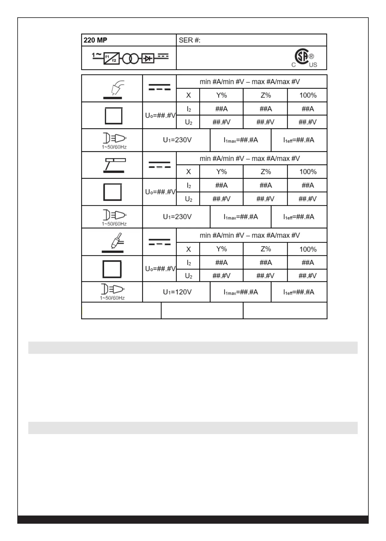 CAUTION: DO NOT REGULARLY EXCEED THE DUTY CYCLE OR DAMAGE TO THE WELDER
